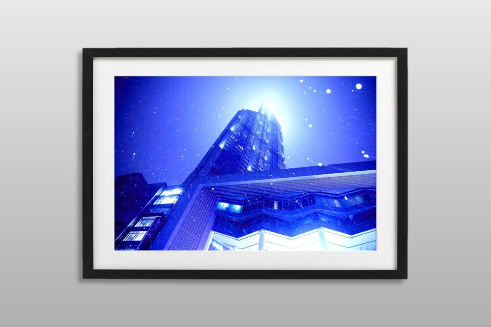 Blue Snow Skyscraper Printable Wall Art, Snow Storm Twilight Printable Photography Shanghai, Instant Digital Download