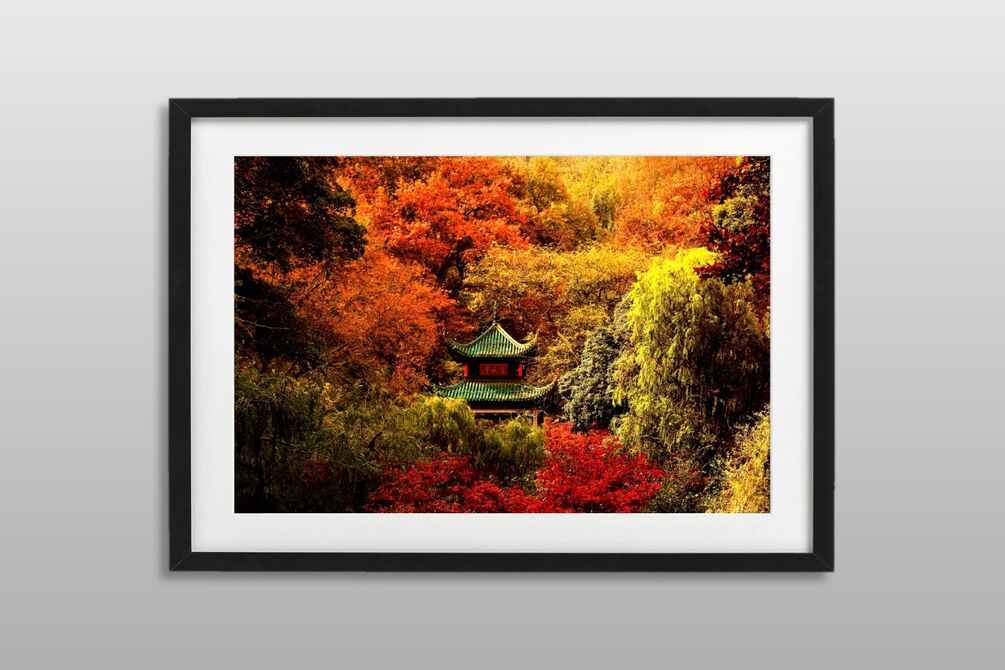 "Red Leaf Pavilion" is a high quality photo artwork by Inspirits.net Fine Art Photography. You are purchasing a digital image file that allows you to easily make poster prints to enrich your home, as last-minute gift for any occasion, and as wallpapers to enjoy on your personal devices.